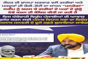 पंजाब के मुख्यमंत्री भगवंत मान ने केंद्र सरकार द्वारा मनरेगा को बदलकर VB-G RAM G (विकसित भारत गारंटी फॉर रोज़गार एंड आजीविका मिशन ग्रामीण) योजना लाने के फैसले पर गुरुवार को तीखी... Read more »