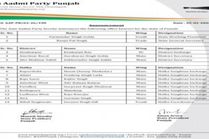 आम आदमी पार्टी (आप) पंजाब ने संगठनात्मक ढांचे को और सशक्त करने के उद्देश्य से विभिन्न विंगों में नए पदाधिकारियों की नियुक्ति की है। इन नियुक्तियों से राज्य के ज़िलों और विधानसभा... Read more »